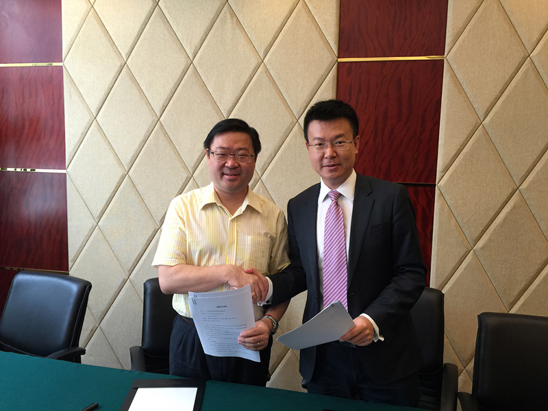 SPI綠能寶董事長彭小峰(左)和江山控股執(zhí)行董事兼董事局主席劉文平代表雙方公司簽署戰(zhàn)略合作協(xié)議。