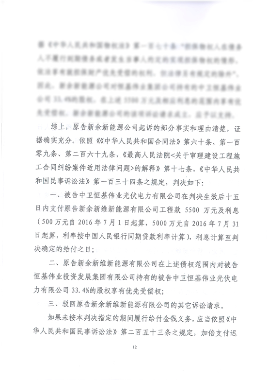 除綠能寶線上項目做兌付支撐外,SPI集團(tuán)將為接下來兌付工作的順利進(jìn)行提供強(qiáng)有力的項目保證。包括:涼城項目20MW,新業(yè)主為招商新能源子公司,尚有總額達(dá)1.43億元的應(yīng)收賬款,我公司已經(jīng)采取訴訟措施,盡快完成應(yīng)收賬款的回收;中衛(wèi)項目,我公司將通過訴訟及項目協(xié)助業(yè)主出售并行的方式,實現(xiàn)總額達(dá)2.35億元的資金回收工作,其中,5,500萬元已經(jīng)由法院判決并申請強(qiáng)制執(zhí)行,并已協(xié)助項目業(yè)主與意向買家商洽,且溝通良好,很快將實現(xiàn)項目出售;巨鹿50MW在建項目,將通過項目出售方式回收約1.5億元以上資金。