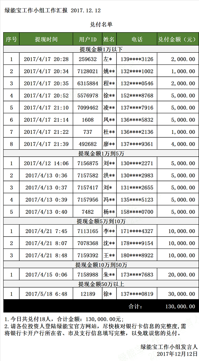 兌付名單(2017年12月12日)