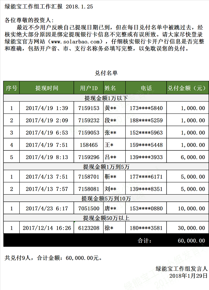 【下一條】兌付名單(2018年1月24日)