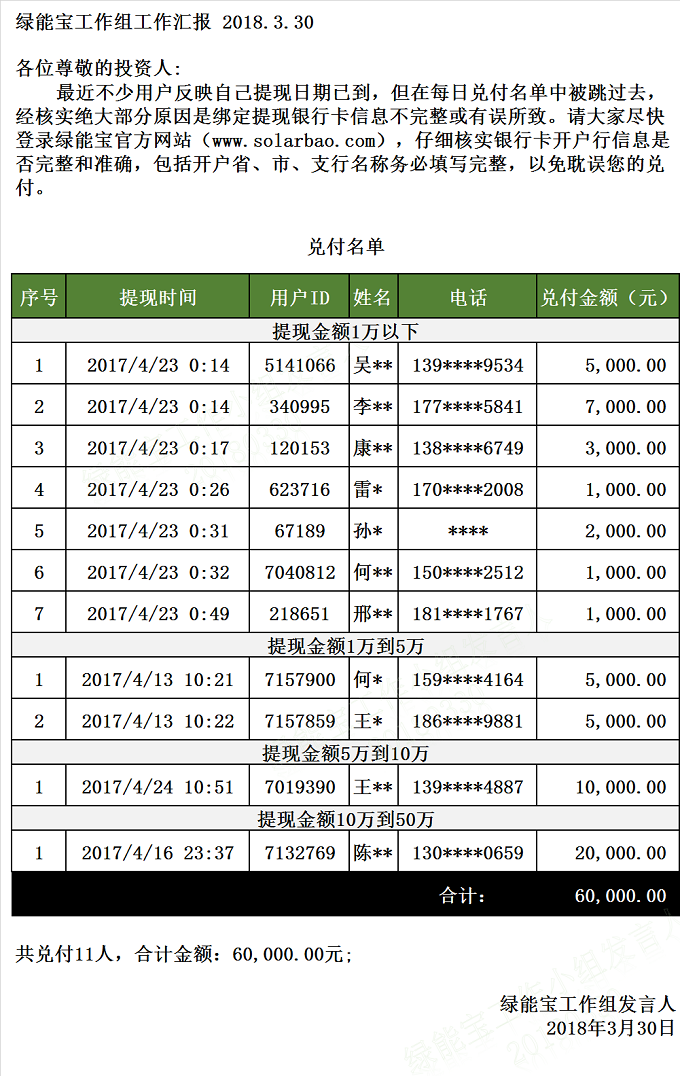 【下一條】兌付名單(2018年3月29日)