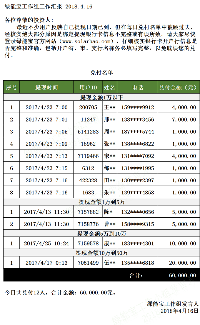 【下一條】兌付名單(2018年4月13日)