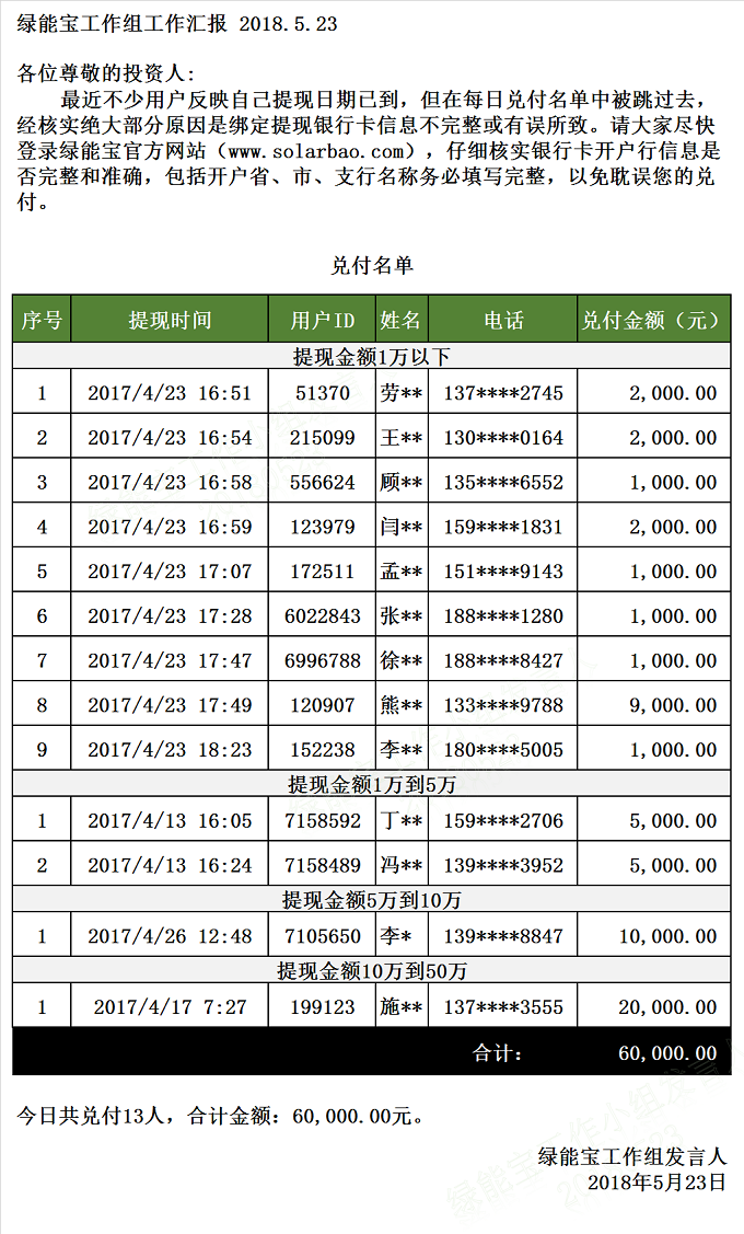 【下一條】兌付名單(2018年5月22日)