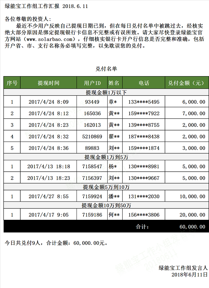 【下一條】 兌付名單(2018年6月8日)