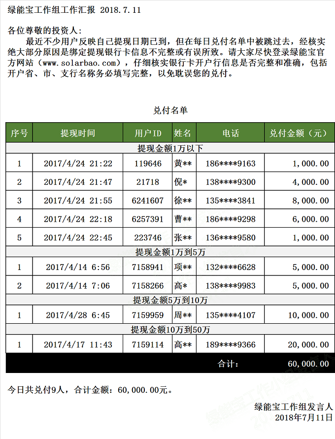 【下一條】兌付名單(2018年7月10日)