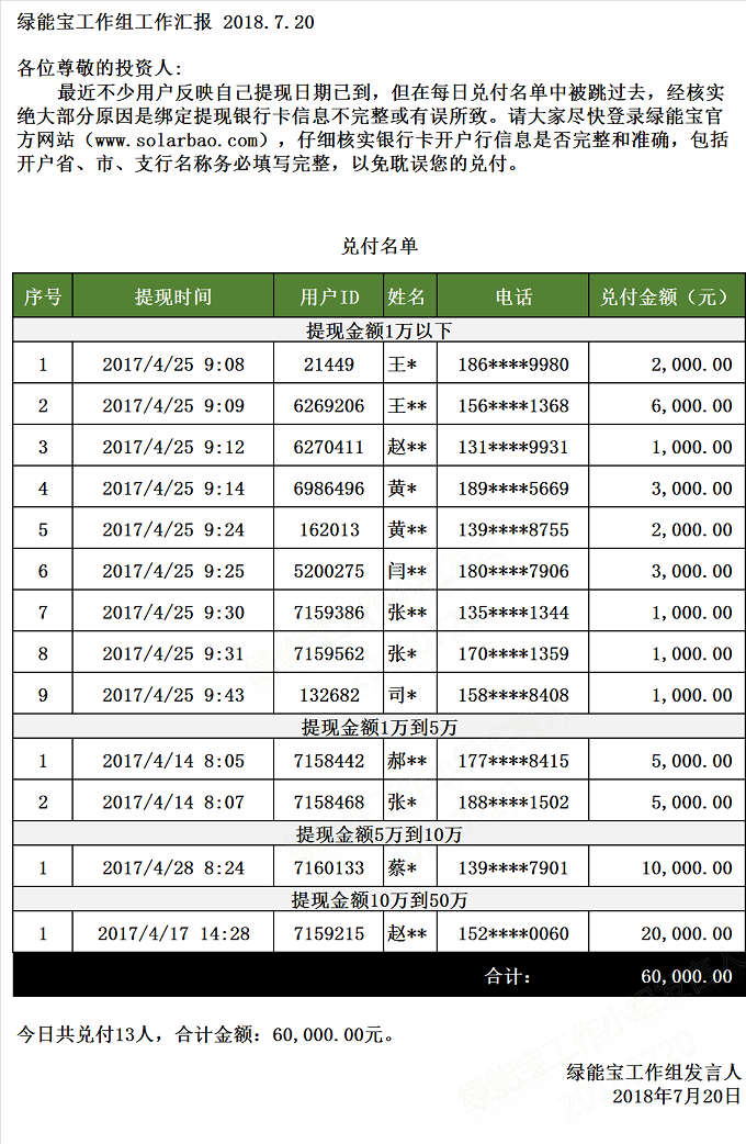 【下一條】 兌付名單(2018年7月19日)