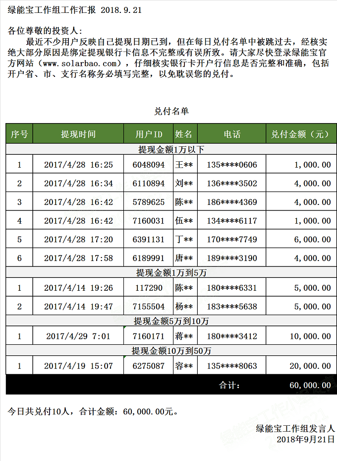 【下一條】兌付名單(2018年9月20日)