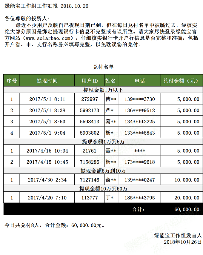 【下一條】兌付名單(2018年10月25日)