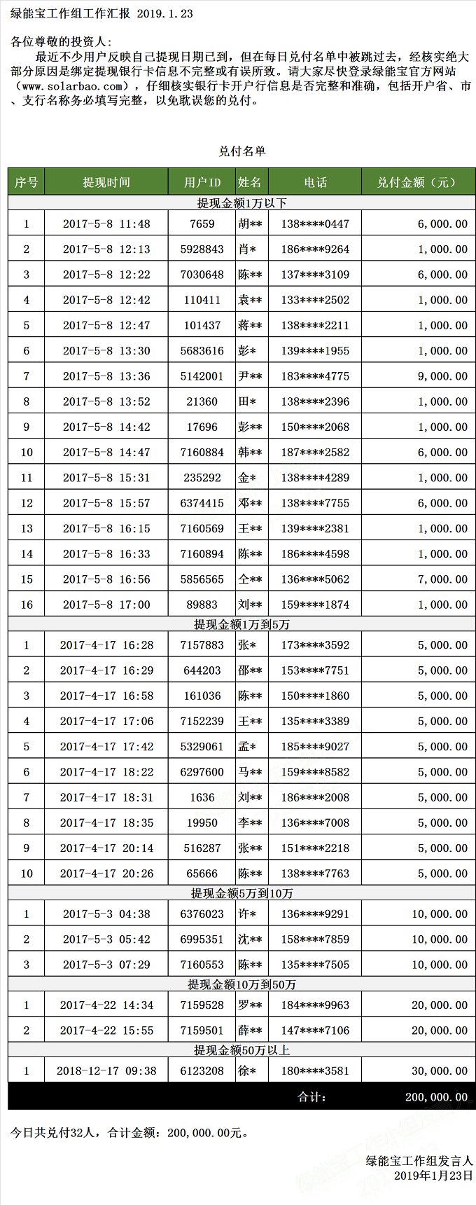 【下一條】兌付名單(2019年1月22日)